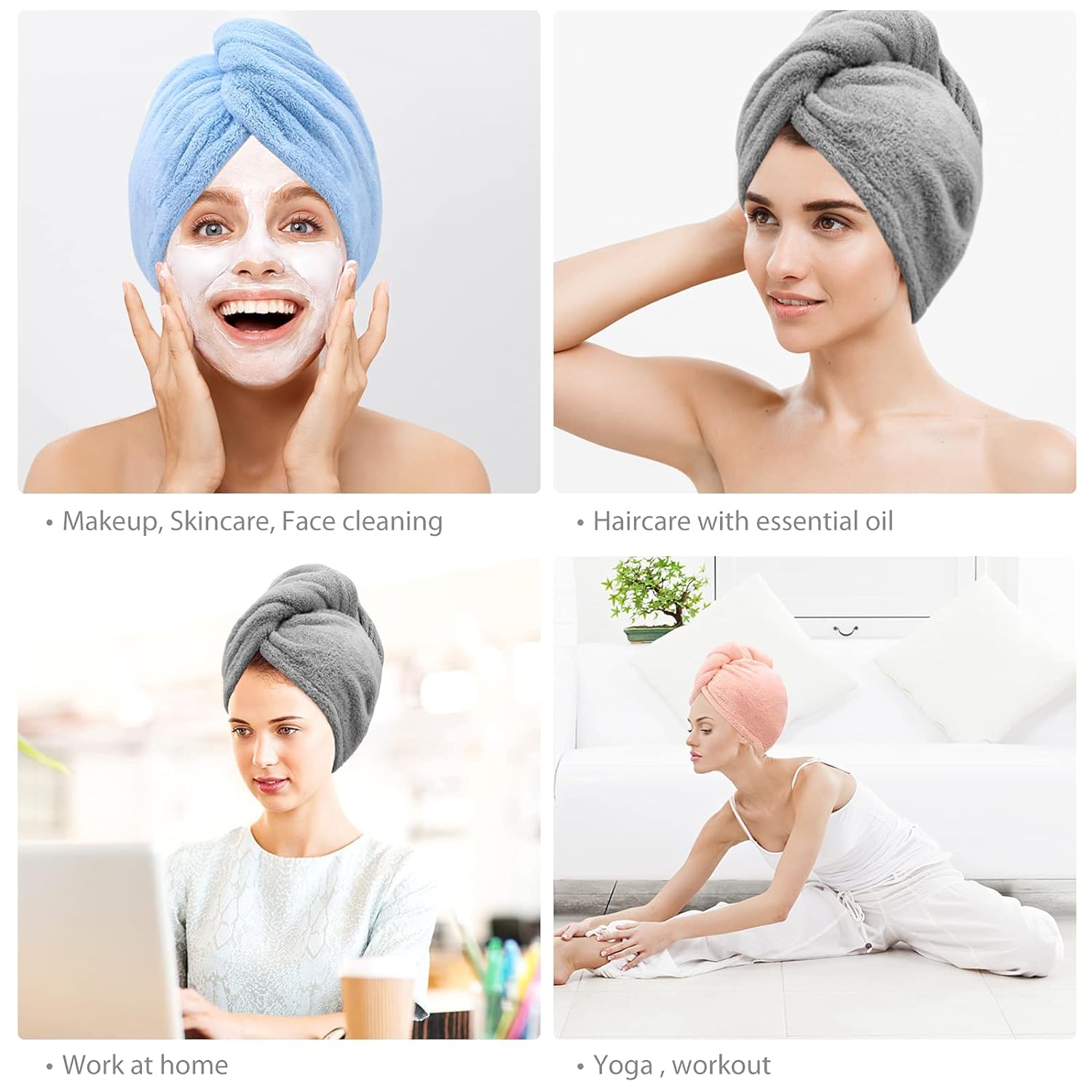 Material :- Our microfiber hair wrap towel for women is made from a revolutionary microfiber material that is extremely soft to the touch, super absorbent and fast drying. Size:-10 X 25 (in inches) or 25 X 65( in Centimeter). The unique non-slip twist and loop system makes it easy to firmly wrap the towel. The hair towel is attractive and so comfortable and easy to wear that using towels to wrap your hair becomes obsolete. The amazing material makes this hair drying towel for women extremely comfortable, but it is also highly durable. The edges of the microfibre towels for bath are bound with soft well-knitt material which greatly increases the life of the hair towel. Use it day after day, and wash it hundreds of times without it wearing out or losing any effectiveness. Being generous in size, this microfiber hair towel turbans will never let you down. Ideal for women, men and kids. Great for all types of hair. From long, short, curly, flat, voluminous or dyed to superstraight, fine strands, coarse and kinky locks. No matter your look, we’ve got you covered. You can carry these hair drying towels everywhere you go. Perfect for the gym, traveling, beach excursions, sports, Yoga, camping, outdoors, home, hotels, pool parties and professional hair salon use! You'll like how it works, but you'll love how it feels.
